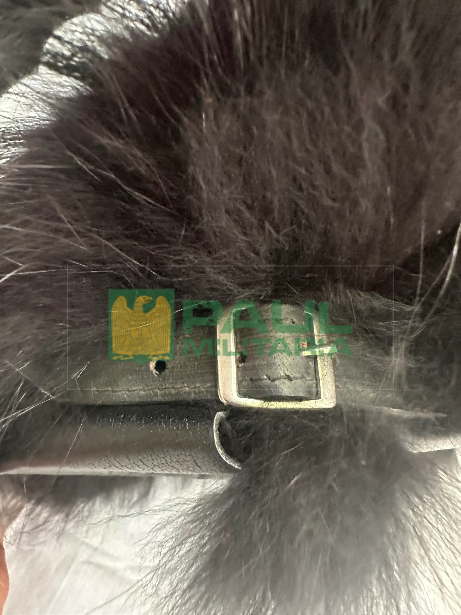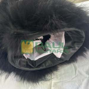 Real RacoonĀ š¦Ā SkinĀ Fur” is sewed on a leather frame.