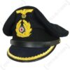This Officer’s visor cap is made from quality white cotton, with silver piping, correct band, shiny peak and has been finished with bullion embroidered wreath/cockade and metal eagle.